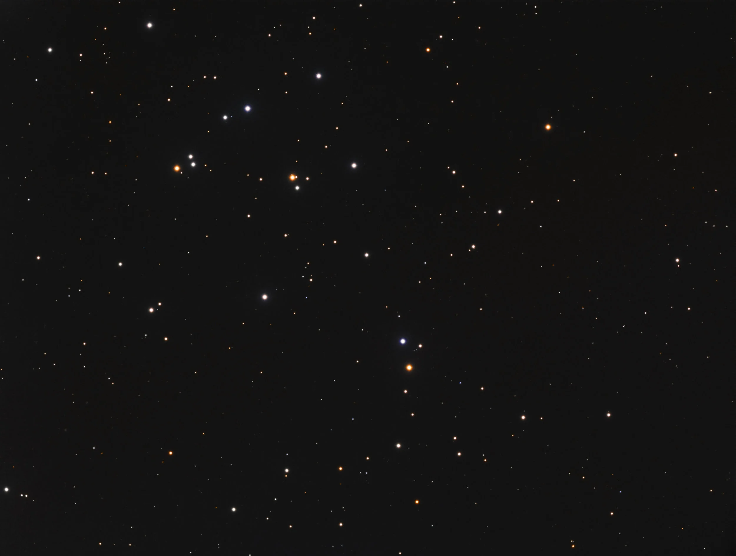 The Beehive Cluster, also known as Praesepe (Latin for "manger"), M44, NGC 2632, or Cr 189, is an open cluster in the constellation Cancer. It is one of the nearest open clusters to the Solar System, and it contains a larger star population than most other nearby clusters. Under dark skies the Beehive Cluster looks like a nebulous object to the naked eye; thus it has been known since ancient times. The classical astronomer Ptolemy called it "the nebulous mass in the breast of Cancer," and it was among the first objects that Galileo studied with his telescope.